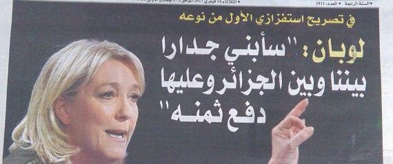 "Le Pen: Je vais construire un mur entre nous et l'Algérie, et cette dernière va le financer", peut-on lire en Une du quotidien El Hayat mardi 14 février.