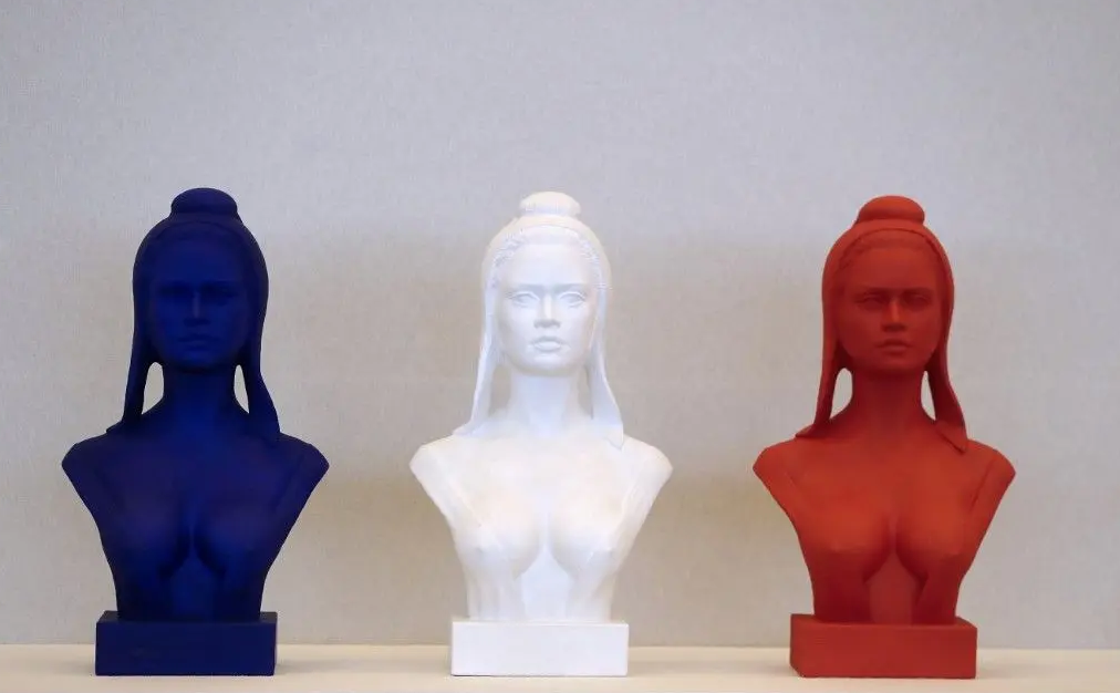Des bustes de Marianne lors d'une exposition.
