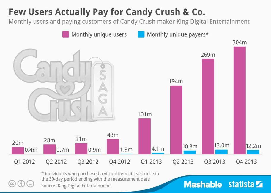 Graphique : Candy Crush veut entrer en bourse mais ses utilisateurs payants sont en baisse
