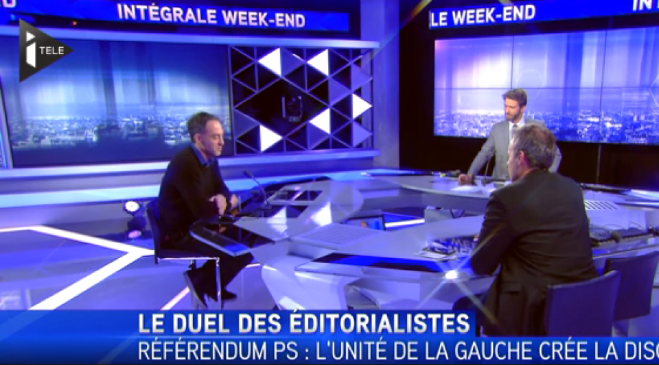 Le cinéaste et écrivain Raphaël Glucksmann et Jean-Sébastien Ferjou, directeur du site Atlantico.fr, étaient les invités du duel sur iTélé ce vendredi soir.